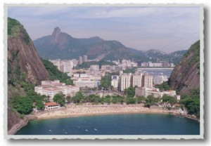 Praia com 243m de areia amarelada e grossa tendo com cenário principal os morros da Urca e do Pão de Açúcar.