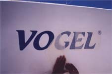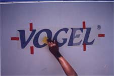 Conforme enviado pela Vogel, isto é, sem remover a máscara e o papel siliconado, posicione o conjunto no local determinado, fixando-o com vários pedaços de fita crepe no perímetro do mesmo. |